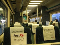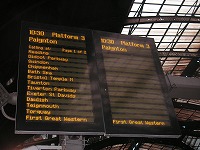 | 今日はPaddington駅からGreat Eastern鉄道でBath Spaに向かいます。 まず、ディパーチャーボード(列車ごとの運行状況、停車駅、乗り場が表示される)でどのホームから乗るか確認。 10分前くらいまではホームが決まらず、表示なしでした。 寸前になってPlatform3の表示が出ると人が一気に移動開始。 今回は10:30発の列車、2等車に乗車です。 前売り割引にあたるAPEX運賃で往復約20ポンド(約4400円)。 編成の前後に気動車(機関車?)がある典型的なヨーロッパの編成です。 ロンドンを出発して約1時間半、定刻でBath Spaに到着。 まずは昼食です。 Cocoa Houseというココアが美味しいらしいレストランで昼食。 ココアが美味しいらしいにもかかわらず、紅茶を注文(笑) メインはアスパラガスのクリーミースープ。 何気にアスパラガスが好きなので…。 |